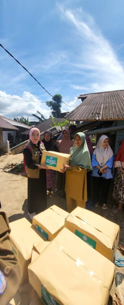 - 15 paket bantuan berisi beras, telur, minyak goreng, handuk, piring, dan gelas untuk keluarga yang rumahnya hilang dan rusak.